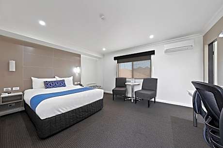 Bluegum Dubbo is located in Dubbo, NSW and offers renovated, 4.5 star rooms with high-end furnishings such as 55-inch Samsung Smart TVs, branded mattress and kitchenettes with sinks, mini-bar refrigerators, toasters, kettles and microwaves. Bluegum Dubbo is located in a quiet and convenient location, an easy walk from restaurants and cafes. All guest rooms are set back from the highway. The properties grounds and car-park are monitored by CCTV. Guests staying at Bluegum Dubbo enjoy free high-speed WiFi, 12 cable channels including movies and sports as well as streaming video apps, including Netflix. Other property facilities include in-room service for breakfast (7 days) & dinner (à la carte menu; Sunday-Friday), a salt-water pool, a BBQ area and off street parking with electric and charging station (limited trailer space is also available).