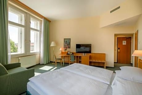 This 4-star property is quietly located only 328 feet from Vltava River and Karlovo namesti. It features air-conditioned rooms with free Wi-Fi, flat-screen TVs, fridges and tea/coffee makers. At the Best Western Hotel Moran guests can start every day with an American breakfast buffet including 6 different types of coffee. Numerous restaurants can be found on the streets surrounding the hotel. The Best Western Hotel Moran is 328 feet from the Karlovo namesti metro station and 230 feet from the Moran tram stop. Within 0.9 mi from the City Hotel Moran guests can visit Charles Bridge and Wenceslas Square. The National Theater, the city's castle and the medieval town center are all 10-minute drive away or less. The Botanical Gardens can be reached by car in 30 minutes. You can park your car in a garage opposite the Hotel Moran at an additional cost.