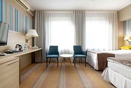 The 4-star Hotel Cristal is located in the center of Białystok, on the main street of the pedestrian area opposite St. Nicholas Church and just 2297 feet from the Branicki Palace. The Market Square and City Hall are 328 feet away. All rooms at the Hotel Cristal Białystok come with free Wi-Fi and air conditioning, as well as a bottle of mineral water. Each room is spacious and have a private bathroom with a hairdryer. The hotel restaurant, Restaurant & Bar Cristal, serves varied buffet breakfast every morning. It specializes in regional and European dishes, and has been awarded the Slow Food emblem by the Slow Food organization and featured in the 4th edition of the restaurant guide Gault Millau 2018. Front desk staff is available 24 hours a day and can arrange laundry services. The property offers airport shuttle service, available upon request. The property also features a Wellness and Fitness zone where guests can relax. Wellness zone features a hot tub, steam and dry sauna and a Relax zone with a salt cave. Hotel Cristal Białystok is conveniently located 2297 feet from the Bialystok University and 2625 feet from Białystok Opera House. Alfa Shopping Center is located 1.1 mi from the hotel. Private parking is available on site.