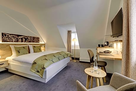 Welcome to the nature and adventure resort Hofgut Sternen, at the entrance of the impressive Ravenna Gorge. Our house is the perfect starting point for numerous sporting activities in the midst of unspoiled nature. A variety of hiking trails and bike routes start from here, leading you through the picturesque landscape of the Black Forest and offering unforgettable nature experiences. Our hotel is a place full of history and charm: Marie-Antoinette stayed here on her way to Paris, and Goethe was also a guest here. Our spacious hotel rooms are decorated in a variety of styles, perfectly in keeping with the history of the hotel. The last room renovation took place at the beginning of the year 2025. The Hofgut Sternen has a cozy restaurant with a sun terrace where you can enjoy regional specialties. In addition, a sunny beer garden and a cozy bar in the vaulted cellar invite you to relax at the end of the day and experience the atmosphere in the midst of nature. Please note that the hotel cannot guarantee you a place in the restaurant in the evening without a reservation in advance. You are therefore welcome to make a reservation before arrival. On the hotel grounds there is a unique glassblowing workshop where you can watch the glassblowers at work, a craft shop where you can see how traditional cuckoo clocks are made and the St. Oswald Chapel, one of the oldest chapels in the Upper Black Forest. Whether you want to be active or simply enjoy the beauty of the surroundings - we have the perfect place for you.