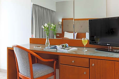 Located in the center of Rhodes Town, the 4-star Best Western has a pool with sun terrace and a sauna. Its rooms offer views to the sea or the Medieval Town. Best Western Plaza Hotel features elegant rooms decorated in soft colors. They are air conditioned and come with a 26-inch flat-screen LED satellite TV, a safety box and free Wi-Fi access. Their marble bathroom is equipped with a hairdryer. Best Western has a restaurant serving Greek and international cuisine in buffet style. The hotel also has a stylish indoor bar and a pool bar serving drinks and cocktails. Rhodes International Airport is 8.7 mi away. Within 984 feet guests can reach the beach, as well as Rhodes Casino.