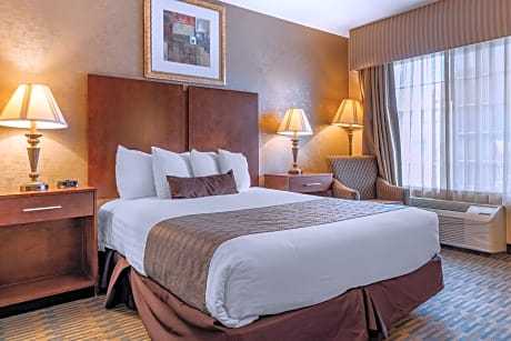 This Santa Clara, California hotel is in Silicon Valley, near the Santa Clara Convention center and California's Great American Theme Park. The hotel offers a free continental breakfast daily. Best Western Santa Clara features guest rooms with mini-refrigerators and microwaves. Free Wi-Fi and cable TV are also included in each room. Guests at the Santa Clara Best Western can use the fitness center. Guest laundry services are also provided. San Jose International Airport is only minutes away from the Best Western in Santa Clara. The Winchester Mystery House is also nearby.