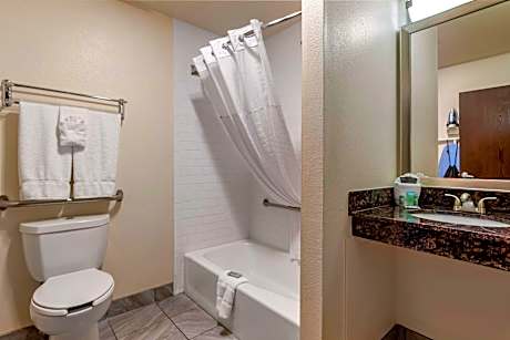 This hotel is located 4 miles from downtown Albuquerque and one block from the Albuquerque International Sunport. This hotel features an airport shuttle and free Wi-Fi in every suite. Suites at the Best Western InnSuites Albuquerque Airport Hotel and Suites are equipped with a refrigerator and microwave. The suites have a coffee maker and ironing facilities. The Best Western InnSuites Albuquerque offers a daily order to go hot breakfast. Guests can workout in the gym or swim in the outdoor pool. The Albuquerque Airport Hotel Best Western InnSuites is 6 miles from the New Mexico Museum of Natural History. The Planetarium and Astronomy Center is within a 12-minute drive of the hotel.