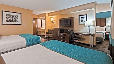 This hotel is 19 mi from downtown Memphis and 25 mi from Graceland, the former home of Elvis Presley. The hotel offers area tours and rooms with a flat-screen TV. Best Western Galleria Inn & Suites Memphis rooms include a microwave and refrigerator. The rooms are also equipped with a work desk and free WiFi. Guests at the Best Western Plus Galleria Inn & Suites are provided with a daily breakfast. After breakfast guests can work out in the gym or work in the business center. The Best Western Galleria Inn is less than a 5-minute drive from the Wolfchase Galleria, which offers shopping. The National Civil Rights Museum is 23 mi from the hotel. Minimum age to reserve a room is 21 years old