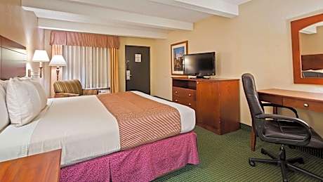 The Best Western Montis Inn offers a daily continental breakfast and each room has a flat-screen TV with cable. This hotel is a 20 minute drive from Fort Leonard Wood. Free Wi-Fi is featured in every contemporary guest room of this Saint Robert hotel. All rooms provide a microwave and a small refrigerator for added convenience. An outdoor pool is on site at the Best Western Montis Inn and after a refreshing swim guests can access the hotel’s business center. A laundromat is also available on site. This hotel is located off Interstate 44 and is a 15 minute drive from downtown Waynesville. The Roubidoux Creek Conservation Area is just 7 miles away.