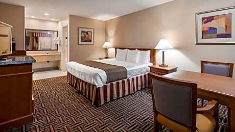 Just off Interstate 605, within a short drive of Commerce Casino, this 100% nonsmoking hotel in Norwalk, California offers a free continental breakfast every morning and free wired high-speed internet access. An outdoor pool is available. Guest rooms at the property offer cable flat-screen TVs, a refrigerator, a microwave, and a work desk. A hairdryer, an iron with ironing facilities, and complimentary toiletries are also standard. Best Western Norwalk Inn features convenient amenities such as free on-site parking. Attractions such as Knott's Berry Farm amusement park, Disneyland, and the Bicycle Club Card Casino are with driving distance of the Norwalk Best Western. Guests can also go shopping at the nearby Cerritos Mall, then see the Medieval Times dinner show.