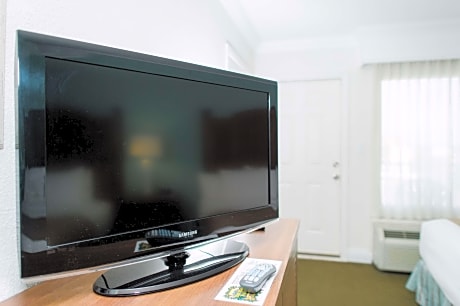 Each guest room is equipped with essential amenities such as a microwave, refrigerator, and coffee-making facilities. Enjoy your favorite shows on a flat-screen cable TV or stay connected with free WiFi. The hotel also features an indoor heated pool with two hot tubs and a beach-side outdoor pool, perfect for relaxation and fun.