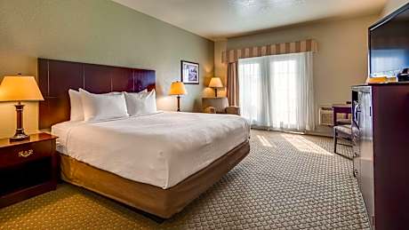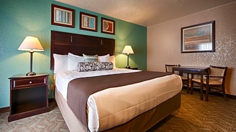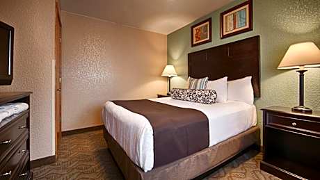 Located off Highway 101, Best Western Plus Bayshore Inn offers rooms with free WiFi and a flat-screen TV. A full hot buffet breakfast is offered daily. It features an on-site restaurant and is just 2.6 miles from Eureka Golf Course. A refrigerator, microwave and coffee maker are provided in all warmly decorated rooms at the Best Western Plus Bayshore Inn. Each room includes a seating area and work desk. On-site dining for all meals is also available at two on site restaurants. Both offer a full bar, one features American cuisine and the other offers barbecue. The Best Western Plus Bayshore Inn offers free access to the outdoor pool, indoor pool and fitness room. A relaxing sauna and hot tub are also available. The business center offers computers with free WiFi and guests can take advantage of the on site launderette. Dry cleaning services are available. Redwood State Parks are 45 minutes' either north or south from the property. The Sequoia Park Zoo is just a 6-minute drive from this hotel.