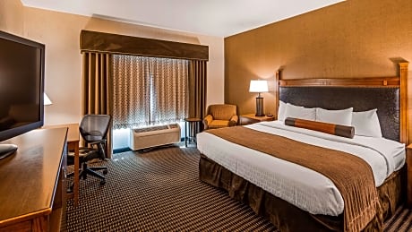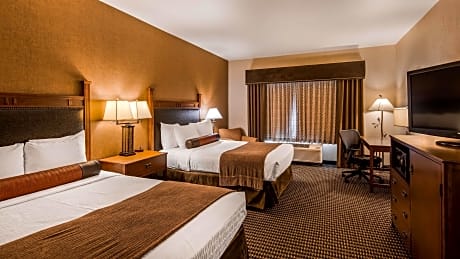 Nestled among the red rock cliffs of Bryce Canyon National Park, this hotel offers exceptional amenities, including a free hot breakfast, completely nonsmoking accommodations and easy access to area attractions. Every room at this hotel is air conditioned and features a flat-screen TV. Some units feature a seating area for your convenience. You will find a coffee machine in the room. Each room is fitted with a private bathroom equipped with a bath or shower. For your comfort, you will find free toiletries and a hairdryer. The hotel also features an on-site fitness center along with an outdoor swimming pool. Additional amenities at the Bryce Canyon Grand Hotel Best Western include free wireless internet access and on-site laundry facilities. Guests will also enjoy on-site dining at Ebenezer's Barn and Grill, offering a cowboy-themed atmosphere and meals. Pink Cliffs Village is 1.3 mi from Best Western PLUS Bryce Canyon Grand Hotel, while Three Wisemen is 2.2 mi away. Scenic hiking and cycling trails are also easily accessible.