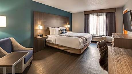 Located off Interstate 74, this hotel is less than 1 mile from from shopping at Market Place Mall. It features an indoor pool and pet-friendly guest rooms with free Wi-Fi. A flat-screen cable TV and a work desk are provided in all rooms at Best Western Plus Champaign/Urbana Inn. For convenience, the classic rooms feature a microwave, fridge and coffee machine. A daily hot breakfast is served at Best Western Plus Champaign/Urbana Inn. Guests can make use of the fitness center and 24-hour business center that are on site. This hotel is 3 miles away from The University of Illinois campus. Memorial Stadium, home of football’s Fighting Illini, can be reached in 13 minutes’ drive.