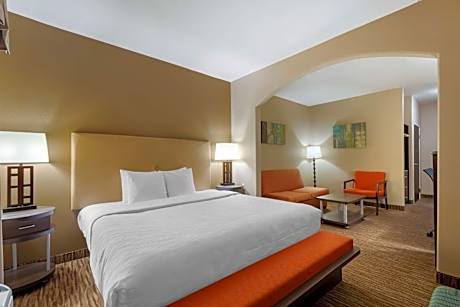 Located 18 miles from Dallas city center, this hotel is just 3 miles from Dallas Fort Worth International Airport. It features an outdoor pool and hot tub. Free Wi-Fi and satellite TV are equipped in each traditional suite at Best Western Plus DFW Airport Suites. A refrigerator, microwave, and coffee-making facilities are provided. Guests can work out in the on-site fitness room, complete with full-length mirrors, a mounted TV, and a variety of cardio equipment. A business center and snack shop are located off of the lobby. Cowboy Stadium, home of the Dallas Cowboys football team, is 15 minutes’ drive from the Dallas Fort Worth International Airport Best Western Plus. Six Flags Over Texas Amusement Park is 16 miles away.