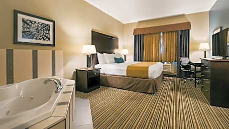 Offering a hot tub and sauna, Best Western PLUS Fort Saskatchewan Inn & Suites is located in Fort Saskatchewan, 15 mi from Edmonton. Every room at this hotel is air conditioned and is equipped with a flat-screen TV. Certain units include a seating area to relax in after a busy day. All rooms are fitted with a private bathroom. Extras include free toiletries and a hair dryer. You will find a 24-hour front desk at the property. Complimentary charging is provided in the parking area for electric vehicles. Nisku is 27 mi from Best Western PLUS Fort Saskatchewan, while Sherwood Park is 11 mi away. The nearest airport is Edmonton International Airport, 29 mi from Best Western PLUS Fort Saskatchewan Inn & Suites.