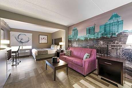 Located 20 minutes outside downtown Greensboro, this hotel is 10 minutes from the Piedmont Triad Airport . An outdoor pool and buffet breakfast are also featured. Clarion Pointe Greensboro Airport guest rooms are equipped with a microwave, refrigerator and 32-inch cable TV. Free Wi-Fi and turndown service is also offered. Clarion Pointe Greensboro Airport has a gym and business center on site. A 24-hour front desk and laundry facilities are also available. Clarion Pointe Greensboro Airport Greensboro Coliseum and Wet 'N Wild Emerald Point water park are a 15-minute drive from Clarion Pointe Greensboro Airport Greensboro. The Civil Rights Museum is a 20-minute drive away.