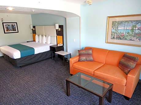 Best Western Plus Kissimmee-Lake Buena Vista South Inn & Suites provides a complimentary hot breakfast for guests to start their day with, and then take a refreshing plunge in the heated outdoor pool. Complimentary WiFi is available to all guests. The Walt Disney World Resort is a 10 minutes' drive from the property. Each room at this air conditioned hotel includes a TV with cable channels. A microwave and refrigerator are also included. All rooms come with a private bathroom fitted with a bath or shower. Some suites feature a separate living area with a sofa bed and a wet bar. Business guests will enjoy the convenience of an onsite business center. For guests looking to work up a sweat, a fitness center is offered. A children's playground and game room are also provided. SeaWorld Orlando is 6.3 mi from the property. Universal Orlando Resort is 9.7 mi away. Orlando International Airport is a 24 minutes' drive from the Sunset Palms Inn & Suites.