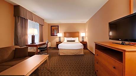 Offering a hot tub and sauna, Best Western PLUS Mission City Lodge is set in Mission. Guests can enjoy the on-site restaurant and bar serving lunch and dinner. An indoor heated pool and fitness center are on site. The rooms include a flat-screen TV. Some units include a seating area to relax in after a busy day. Every room has a private bathroom. Guests can enjoy a daily complimentary breakfast which includes eggs, bacon, yogurt, fruit, cereal, coffee and tea. A 24-hour front desk and laundry facilities are on site. Cascade Falls is 16 mi from BW Mission CIty, while Mission Race Ways is 1.2 mi away. The nearest airport is Abbotsford International Airport, 8.1 mi from the property. Westminster Abbey is 4.3 mi away.