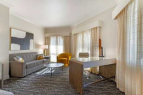 Offering free WiFi, flat screen TV, refrigerator and coffee maker - Mobility accessible -Communication Assistance- Accessible rooms available for mobility, visual, and hearing impairment-Accessible guest rooms offer all the standard amenities of our other rooms, but with added ease-of-use controls (light switch, heating/air conditioning, etc.) at accessible heights. Bathroom: grab bars with transfer space- shower seat, lowered closet shelf, vanity-table/desk with required leg clearance- insulated hot water pipes,-audio visual smoke detectors- closed caption televisions- accessible path of travel.