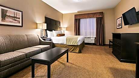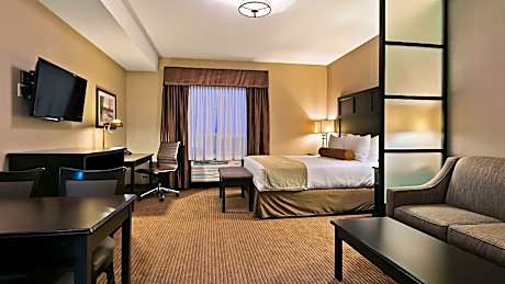 At Best Western Plus Okotoks Inn and Suites, exceptional service and top-notch amenities create a memorable experience for guests.Complimentary internet access is available in the hotel to ensure you stay connected during your visit. Arrange your trips to and from the airport using the hotel's convenient transportation services booking.Amenities at car hire offered by Best Western Plus Okotoks Inn and Suites simplify the organization of your excursions, tourist activities, and other adventures in Okotoks (AB). Complimentary parking is available for guests.Continuously receive the support you require through front desk amenities such as concierge service, express check-in or check-out, luggage storage and safety deposit boxes.At the hotel, their tours can even assist you in booking tickets and securing reservations for leisure activities and adventures.Chilly nights become more delightful than balmy ones, as you snuggle near the hotel's inviting hearth. Always look your best in your preferred attire with the dry cleaning service and laundry service provided at Best Western Plus Okotoks Inn and Suites.Desire to unwind? Make the most of your visit at Best Western Plus Okotoks Inn and Suites with accessible amenities such as daily housekeeping.Additionally, you can obtain minor travel essentials and miscellaneous items at the convenience stores without departing from the Best Western Plus Okotoks Inn and Suites.Due to health concerns, smoking is strictly prohibited within the entire premises of hotel. For the health and well-being of all guests and staff, smoking is restricted exclusively to assigned zones.Accommodations come equipped with all the conveniences required for a restful night's slumber. A selection of rooms at Best Western Plus Okotoks Inn and Suites come furnished with air conditioning to cater to your needs and comfort.A few chosen rooms are equipped with television and cable TV to ensure guest amusement.In certain rooms, the hotel offers visitors access to a refrigerator and a coffee or tea maker.Best Western Plus Okotoks Inn and Suites offers a hair dryer and toiletries in the restrooms of specific accommodations. At Best Western Plus Okotoks Inn and Suites, each day commences with a scrumptious breakfast offered at no additional cost.At Best Western Plus Okotoks Inn and Suites, affordable refreshments are available 24/7 through the convenient vending machines on-site. At Best Western Plus Okotoks Inn and Suites, guests can take pleasure in the delightful recreational amenities provided for their entertainment.Conclude your days in complete tranquility by paying a visit to hot tub and spa for ultimate relaxation. At Best Western Plus Okotoks Inn and Suites, a wide array of amenities guarantees a fulfilling experience throughout your visit. Make your holiday truly memorable by taking a rejuvenating plunge into the pool. At the hotel fitness center, you have the option to engage in your daily exercise routine or simply alleviate your jet lag by breaking a sweat.