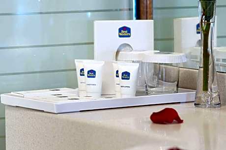 At Best Western Plus Salmiya, exceptional service and top-notch amenities create a memorable experience for guests. Complimentary internet access is available in the hotel to ensure you stay connected during your visit. Arrange your trips to and from the airport using the hotel's convenient transportation services booking.Amenities at car hire offered by Best Western Plus Salmiya simplify the organization of your excursions, tourist activities, and other adventures in Kuwait. Complimentary parking is available for guests.Continuously receive the support you require through front desk amenities such as concierge service, luggage storage and safety deposit boxes.At the hotel, utilize the convenient laundromat to maintain your preferred travel attire fresh, allowing you to pack lighter.Accommodations come equipped with all the conveniences required for a restful night's slumber. A number of rooms feature cable TV for guest amusement and enjoyment.In certain rooms, the hotel offers visitors access to a refrigerator, instant tea and mini bar.Best Western Plus Salmiya offers a hair dryer and bathrobes in the restrooms of specific accommodations. All adore a delightful cup of coffee! An on-site coffee shop ensures you can relish a cup of authentic, freshly-brewed coffee every morning -- or whenever you desire it. Allow your journey to be free from the pangs of hunger! On-site eateries offer delicious and accessible meal choices.At Best Western Plus Salmiya, guests can take pleasure in the delightful recreational amenities provided for their entertainment.Conclude your days in complete tranquility by visiting the massage situated precisely at the hotel. At the hotel fitness center, you have the option to engage in your daily exercise routine or simply alleviate your jet lag by breaking a sweat.