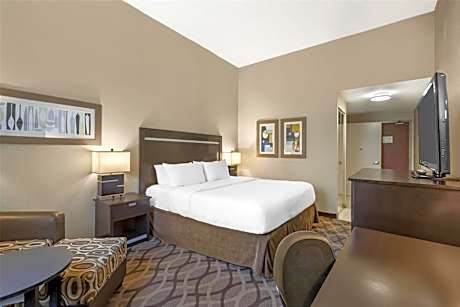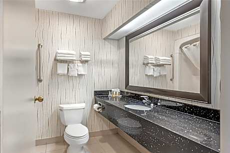 This hotel is located 3.1 mi from the Toronto Pearson International Airport. The hotel features a free airport shuttle and also provides a microwave and refrigerator in every room. Best Western Plus Travel Hotel Toronto Airport rooms feature free WiFi and a 42-inch flat-screen cable TV. The rooms also include a coffee maker. The Toronto Airport Best Western Plus Travel Hotel offers guests a continental breakfast. The Airport Best Western Plus has laundry facilities available to guests. Guests can also work out in the gym or work in the business center. The Best Western Plus Hotel Toronto is within a 10-minute drive of Centennial Park. The hotel is 16 mi from downtown Toronto.