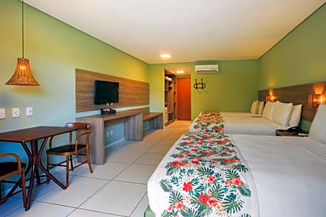 Set ideally on the white sands of Porto de Galinhas Beach, Vivá Porto de Galinhas Resort is located in the Ipojuca region. Guests will find an indoor and outdoor pool within the property. A savory buffet breakfast is served daily and free WiFi is available. With a balcony and sea views, the air-conditioned rooms boast a contemporary décor and feature a flat-screen TV, a mini-bar and a private bathroom with a hot shower and amenities. The Deluxe category has a hot tub on the balcony. Because of its closeness to the ocean, the hotel offers many options to unwind by the beach, including a bar service and sun loungers. Guests can work out at the fitness center or relax at the spa. Vivá Porto de Galinhas Resort also offers sports court, bar. movie theater and kids' entertainment options. Vivá Porto de Galinhas Resort is 1312 feet from Cupe Beach and 3.1 mi from the city center. Guararapes International Airport is 29 mi away.