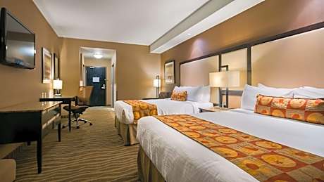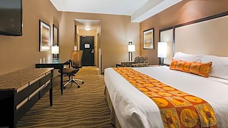 This Calgary, Alberta hotel features an indoor pool with waterslide, on-site restaurant and rooms with a 42-inch flat-screen TV. Free airport transportation is offered to Calgary International Airport, 1.9 mi away. The stylish rooms are equipped with a refrigerator, microwave and safe. Free Wi-Fi and an iPod docking station are provided and suites feature a fireplace and bathrobes. Best Western PREMIER Freeport offers a modern gym. Guests can use the full-service business center or visit the gift shop. The lobby lounge features pub-style food and a full bar. The University of Calgary is a 20-minute drive from this hotel. The Hangar Flight Museum is 4.5 mi away and the Calgary Zoo is 15 minutes’ drive away.