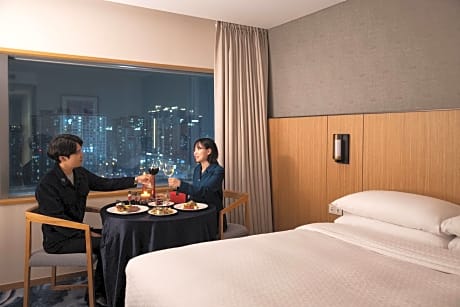 Four Points by Sheraton Seoul, Guro provides flawless service and all the necessary facilities for visitors.Visitors can take advantage of the accessible parking options directly at the hotel.Reception services such as concierge service and safety deposit boxes are available to accommodate your requirements.Traveling with minimal luggage is achievable at Four Points by Sheraton Seoul, Guro due to the hotel's dry cleaning service ensuring your garments stay fresh. Room amenities like room service and daily housekeeping contribute to making a perfect selection for your stay. Each accommodation at Four Points by Sheraton Seoul, Guro is thoughtfully created and adorned to provide visitors with a comfortable, home-like atmosphere. In select rooms, guests can enjoy a touch of amusement with the availability of cable TV for their entertainment. Rest assured, in a few chosen rooms, the presence of instant tea can be found.Maintain your cleanliness and comfort using a hair dryer and bathrobes available in select guest restrooms. Embark on your holiday experience in the most ideal manner. Commence each morning of your visit with an on-site breakfast.Experience the delight of a fresh morning by savoring excellent coffee at the cafe situated within hotel.