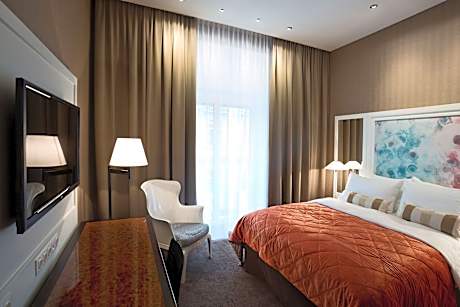The family-run Hotel Harmonie Vienna is 1640 feet from the Servitenviertel, a charming residential area in Vienna’s 9th district, housing a lounge with a bar and library, a fitness room, a 24-hour mini shop and offering free WiFi. The city center can be reached within a 5-minute tram ride or a 10-minute walk. Entirely re-designed in June 2013 in a dance theme, the rooms at this boutique hotel are fitted with a mini-bar, tea and coffee facilities, a large work desk, laptop-size safe and up to 42“ large flat-screen TV with satellite channels. The private bathrooms come with a shower, bathrobes and slippers, and there is an ironing board. A rich buffet breakfast is served every morning, and it includes regional organic products. The bar serves free tea and homemade cakes in the afternoon between 3:00 p.m. and 6:00 p.m. Viennese coffee can be ordered with it. At the bar, free tea and homemade cake are served in the afternoon between 3:00 PM and 6:00 PM. You can also order a Viennese coffee.Small snacks - cold and warm - are served in the bistro between 11:00 a.m. and 10:00 p.m. Parking can be arranged in a public garage at an additional cost - the garage is around the corner. The Hauptbahnhof Train Station is reachable within a 15-minute tram ride, and the tram stop of the D line and line number 1 is 2 minutes' walk away. Vienna International Airport is 12 mi away.