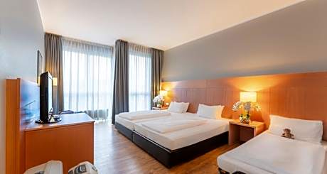 Offering free toiletries, this triple room includes a private bathroom with a bath, a shower and a hairdryer. The spacious triple room offers a flat-screen TV with satellite channels, a tea and coffee maker, a seating area, a wardrobe as well as city views. The unit has 2 beds.
