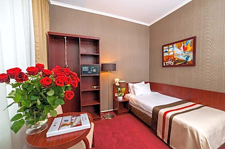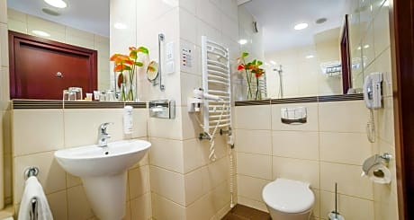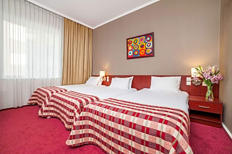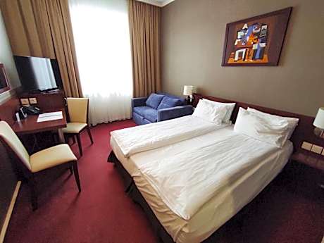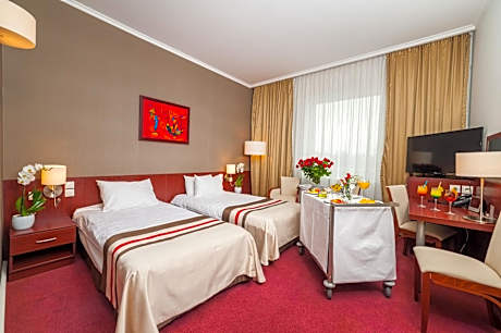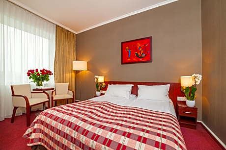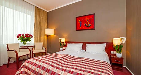 The elegant 4-star Premier Kraków Hotel features a swimming pool and a sauna that guests have free access to. It is located within a 10-minute drive of the Kraków Old Town, which is also accessible directly via public transport. Located in the northern part of the city, it also 6.2 mi from Kraków Balice Airport. All rooms at the Premier Kraków are soundproofed, air-conditioned and have an LCD TV with satellite channels. Each comes with a tea and coffee-making facilities and a safe. The spacious rooms come with free WiFi. Ironing facilities are available on request. A varied buffet breakfast is served every morning at the hotel restaurant, Impresja, which specializes in international dishes. At the Act Café Bar guests can enjoy coffee or a drink. Front desk staff is available 24 hours a day and can arrange transfer to the city center. Luggage storage and room service are available. Private parking is available on site.