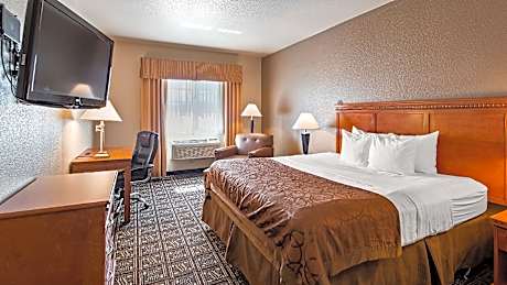 Great care is taken to ensure guests experience comfort through top-notch services and amenities. Stay connected with your associates, as complimentary Wi-Fi is available during your entire visit.When arriving by car, you'll be grateful for the on-site complimentary parking at hotel.The hotel offers reception assistance, including express check-in or check-out, to ensure guest satisfaction. The hotel also features a fireplace, providing a cozy ambience during cool evenings.Whether you're here for an extended stay or simply require fresh garments, the hotel ensures your cherished travel attire remains spotless and accessible with the convenience of laundromat located on the premises.The hotel's daily housekeeping ensures an excellent option for your stay.Need something at the last minute? The convenience stores has you covered, ensuring your requirements are met without any inconvenience.To ensure the well-being and convenience of all visitors, smoking is strictly prohibited throughout the entire hotel. In order to ensure the utmost level of relaxation, the guestrooms feature an inviting design and are equipped with all basic necessities, creating a delightful stay experience.In select rooms, visitors can enjoy a touch of amusement with the availability of television and cable TV for their entertainment needs.Within specific rooms, a refrigerator and a coffee or tea maker is conveniently available for your use.You'll be pleased to know that select guest bathrooms offer bathroom amenities such as a hair dryer, ensuring a comfortable stay. Each day, arise to a delightful complimentary morning meal at Best Western Rambler.Throughout the day, engage in the entertaining activities available at Best Western Rambler.Unwind effortlessly each day by exploring the hot tub, conveniently situated within the hotel.Unwind by the pool at hotel and cherish a leisurely moment. Guests who enjoy maintaining their fitness regimen while on holiday can visit the fitness center provided by hotel.