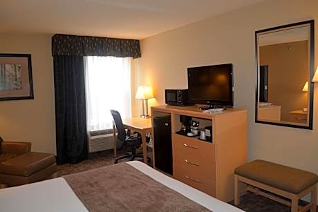 This Roanoke Rapids hotel features an outdoor pool, hot buffet breakfast, and free WiFi access. Halifax Regional Medical Center is 5 minutes’ drive from the property. A flat-screen cable TV and a desk are featured in each room at SureStay Plus Hotel by Best Western Roanoke Rapids. A microwave and refrigerator are included as well as an private bathroom. A fitness center and business center are on site at SureStay Plus Hotel by Best Western Roanoke Rapids. A 24-hour front desk, daily maid service, and complimentary parking are offered for guests’ convenience. Halifax Community College is 3.4 mi away from the hotel, while Roanoke Rapids Theater is 4 minutes' drive by car. Halifax Academy is 1.6 mi away.