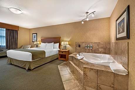 This Sicamous, BC hotel is within 1 hours’ drive of Shuswap Lake and Enchanted Forest. It features an indoor pool and a daily continental breakfast. Guest rooms include free Wi-Fi. A flat-screen TV and a work desk are featured in each room at Best Western Sicamous Inn. The traditionally styled rooms also offer a microwave and small fridge for convenience. The complimentary daily breakfast features items like eggs, bacon, waffles and fresh fruit. Sicamous Best Western offers an on-site business center free of use for guests. After a day of work or exploration, guests can relax in the indoor or outdoor hot tubs. This hotel is less than 0.6 mi from the local D’Dutchmen Dairy. Hyde Mountain Golf Course is less than 10 minutes’ drive away.