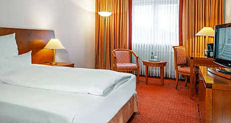 This 4-star business hotel is located in a residential area in the district of Rodenhof, 0.6 mi from the city center. The hotel features a summer terrace and an indoor pool. Each room features a flat-screen TV with cable channels and a private bathroom. Free calls from the room connection to all landlines and mobile networks worldwide are included. Guests can enjoy a drink in the hotel bar or a meal at the in-house restaurant, which serves a variety of American dishes and also offers vegetarian options. Best Western Victor's Residenz-Hotel Rodenhof offers a wellness area with swimming pool, sauna and fitness room as well as beauty services and conference facilities for up to 100 delegates. The nearest airport is Saarbrucken Airport, 11 mi from Best Western Victor's Residenz-Hotel Rodenhof. The Best Western Victor's Residenz-Hotel Rodenhof has been awarded the GreenSign sustainability certificate.