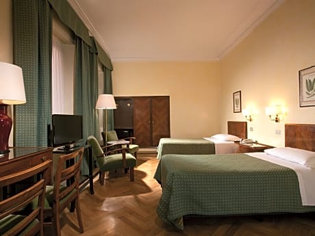A few steps from Termini Train Station, the Bettoja Atlantico is a hotel built in 1912 on the highest of Rome's 7 hills. It offers free Wi-Fi throughout, and breathtaking views of Rome from its rooftop terrace. Within 20 minutes' walk, guests of the Bettoja Hotel Atlantico can reach the Coliseum, Trevi Fountain and other major monuments. The Vatican Museums and Spanish Steps can be easily reached by metro. Guests rooms come with classic-style décor, air conditioning and a TV. A safe and mini-bar are also provided in each. A rich breakfast is available every morning. Guests can also enjoy the on-site restaurant.
