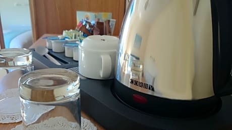 This double room features a electric kettle and view.