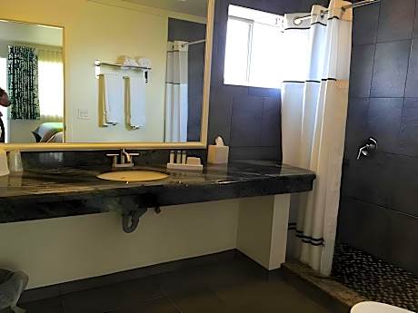 Featuring private bathrooms with granite counters, this room includes flat-screen cable TV with extended channels. A refrigerator and microwave are also provided in this room. The decor is inspired by Hollywood.