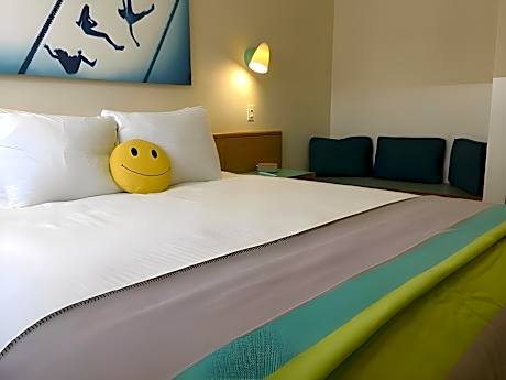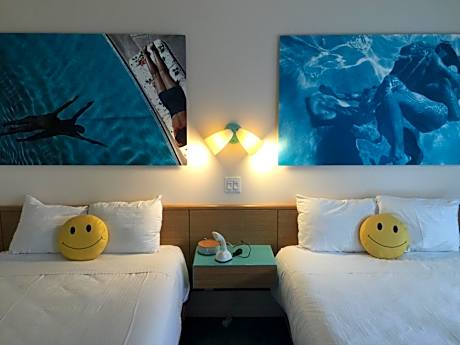 Featuring private bathrooms with granite counters, this room includes flat-screen cable TV with extended channels. A refrigerator and microwave are also provided in this room. The decor is inspired by Hollywood.