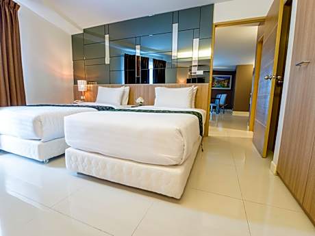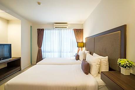 Beyond Suite Hotel provides flawless service and all the necessary facilities for visitors.Remain linked during your visit by utilizing the complimentary internet access available. Experience the wonders of Bangkok with ease by utilizing the services provided at taxi. The inn offers complimentary parking for guests who arrive with their own mode of transport. Effortlessly plan your daily activities and travel requirements with luggage storage and safety deposit boxes provided by the front desk services.Repeatedly enjoy your best-loved attire with the aid of the laundry service available at Beyond Suite Hotel.During leisurely days and evenings, in-room amenities such as room service and daily housekeeping enable you to maximize your stay in the room.In limited designated zones, smoking is exclusively permitted.Crafted for coziness, every guestroom provides an array of features, guaranteeing a tranquil night's sleep while maintaining the level of comfort. For a more enjoyable stay, select rooms at inn are equipped with blackout curtains and air conditioning. At Beyond Suite Hotel, a selection of rooms can be found that showcase unique design elements such as a balcony or terrace. For certain chosen rooms, guests can enjoy in-room amusement like television and cable TV as a part of their stay.Rest assured that your hydration needs will be met, as some guestrooms are equipped with a refrigerator, bottled water, a coffee or tea maker, instant coffee and mini bar.It is worth noting that certain guest bathrooms feature a hair dryer and toiletries for your convenience. Begin your holiday mornings right with your essential cup of coffee, offered daily at the cafe on-site. During your visit, indulge in a range of delightful culinary choices at inn to enhance your experience. Enjoy an entertaining evening alongside your fellow travelers at inn's very own karaoke rooms and bar. During your stay at inn, an array of engaging activities and amenities guarantees a delightful experience.Treat and spoil yourself by taking a trip to massage.Begin your holiday perfectly by taking a plunge into the swimming pool.