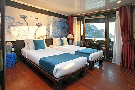 Bhaya offers a variety of onboard activities, such as sunrise Taichi, Vietnamese cooking classes, and squid fishing at night. Cabin rooms on Bhaya have private bathrooms with shower facilities. A window provides natural light and views of the sea and islands as the ship sails around Halong Bay. Guests can join the Tai Chi morning sessions on the sundeck. Water activities include swimming, and kayaking. Vietnamese and international set menus and buffets are served at the property.