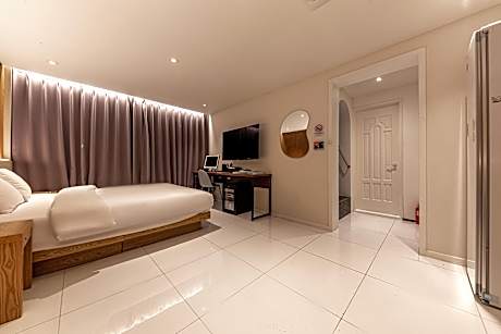 Great care is taken to ensure guests experience comfort through top-notch services and amenities. Stay connected with your associates, as complimentary Wi-Fi is available during your entire visit.The hotel offers taxi and car hire amenities for your ease in navigating around Gwangju Metropolitan City.When arriving by car, you'll be grateful for the on-site complimentary parking at hotel.The hotel offers reception assistance, including luggage storage, to ensure guest satisfaction. Whether you're here for an extended stay or simply require fresh garments, the hotel ensures your cherished travel attire remains spotless and accessible with the convenience of laundry service located on the premises. The hotel's daily housekeeping ensures an excellent option for your stay. Need something at the last minute? The convenience stores has you covered, ensuring your requirements are met without any inconvenience. To ensure the well-being and convenience of all visitors, smoking is strictly prohibited throughout the entire hotel. Smoking is permitted solely in the specified smoking zones allocated by hotel. In order to ensure the utmost level of relaxation, the guestrooms feature an inviting design and are equipped with all basic necessities, creating a delightful stay experience. To ensure a pleasant stay, a selection of rooms at hotel come furnished with blackout curtains and air conditioning, all designed with your ease in mind. Several chosen accommodations at Biennale Hotel have a separate living room incorporated into the room design. In select rooms, visitors can enjoy a touch of amusement with the availability of daily newspaper, television, in-room video streaming and cable TV for their entertainment needs. Within specific rooms, a refrigerator, bottled water, a coffee or tea maker, instant coffee and instant tea is conveniently available for your use. Understanding the significance of bathroom facilities in enhancing visitor contentment, hotel offers a hair dryer, toiletries and bathrobes within a few chosen chambers.