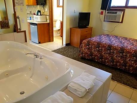Featuring an heated outdoor swimming pool and an heated indoor swimming pool, Black Hawk Motel & Suites is located in Wisconsin Dells. The property offers Free Timbavati Wildlife Park, Free Admission to the Haunted Mansion and Free Pine Crest Par 3 Golf (club rentals available) for all registered guests Air conditioning and a coffee machine are included in each simply furnished guest room. Free WiFi access is offered. BBQ facilities are available for guests’ use at Wisconsin Dells Black Hawk Motel & Suites. A pinball prize arcade & billiard table and 2 children's playgrounds are also on-site. Noah’s Ark Water Park is 7 minutes’ drive from the motel. Pine Crest Par 3 Golf course is a 5 minute drive