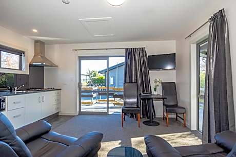 Newly Built in 2017 Black on Gray offers standalone accommodations units, located in a semi rural area, on the main road into Geraldine from Timaru. Every standalone unit is equipped with a lounge/seating area, full kitchen with cooking facilities and an private bathroom with a walk in shower, toiletries and a hairdryer. Flat-screen Smart TV's that have Netflix are available in all rooms. Outdoor decks wrap-around your stand alone unit offering a rural outlook. BBQ's are available for summer evening cooking. Free WiFi is offered and each unit has its own car parking spot.