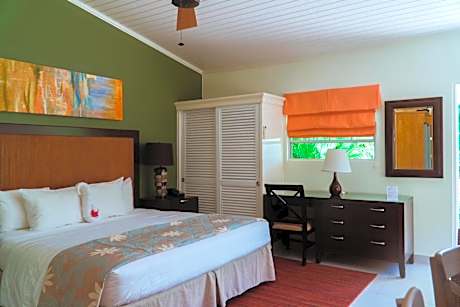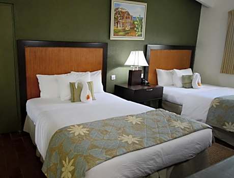 This room category offers either 1 King-size bed or 2 Queen-size beds and 1 Twin sofa bed and Garden Views. It offers contemporary style décor, air conditioning, ceiling fan, 32" LED flat-screen cable TV, iron/ ironing board, hair dryer and electronic safe. The fully equipped kitchenette includes fridge, stove, toaster and coffee maker, while the private bathroom comes with bathtub.