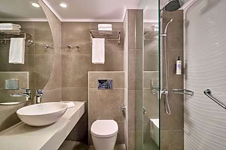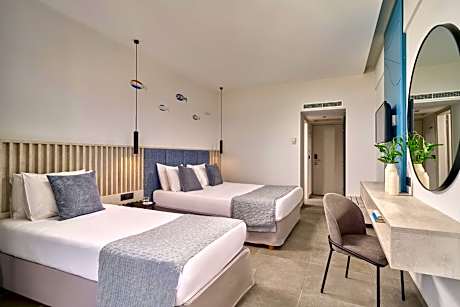 Set on the sandy Faliraki Beach, the Blue Sea Beach features indoor and outdoor pools for adults and children. Sun beds and free towels are available on the beach. WiFi is offered in public areas. Blue Sea Beach’s spacious rooms feature a mini-bar and satellite TV. They are all en suite with hairdryer and bathroom amenities. Air conditioning available from 1 June to 30 September. Buffet breakfast is served at the main restaurant. Epicouros restaurant serves Greek dishes for lunch or dinner and offers themed nights while providing unlimited sea views from its dining area. The seaside snack bar Poseidon offers light meals. The Blue Sea features 1 tennis court, a fully-equipped gym. A hot tub, massage rooms and sauna are available for rejuvenation. Kids enjoy a mini club, while daily entertainment activities are organized for all guests. The Beach Resort Blue Sea is 7.5 mi from Rhodes Town. It is within a 5-minute drive from Kalithea Bay and a 15-minute drive from Diagoras International Airport. Free parking is possible at a location nearby.