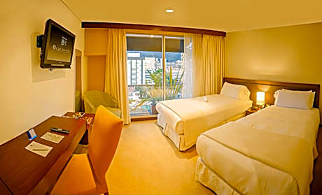 This suite includes a double bed or two twin beds, a desk, a marble bathroom with a rain shower and a flat-screen cable TV. Free WiFi is offered throughout the hotel.