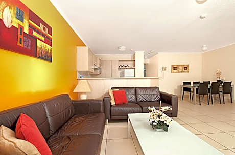 Blue Waters Apartments features an heated in-ground pool and spa, set amid a tropical garden and BBQ area. The apartments come with a fully equipped kitchen with dishwasher, oven and microwave. All crockery, glassware, cookware and utensils are included. All linen is provided, and the beautifully furnished and appointed 2 and 3-bedroom apartments are serviced weekly. There is a laundry inside the apartment. Air conditioning is in the main living area. Fans are provided for bedrooms. Please note pool towels are not supplied. Blue Waters Apartments are 4 minutes' drive from Australia Fair Shopping Center, 12 minutes' drive from Sea World and 20 minutes' drive from the center of the Gold Coast. Gold Coast Airport is 1 hours' drive from the property. Please note we are a 3 story walk up building with NO elevators. All apartments have stair access and may not be suitable for people with mobility issues. Please note that all apartments are individually owned and furnished and the photos are presented as a guide only. This property is now a NO SMOKING property, this includes on balconies, and anywhere inside the complex grounds.