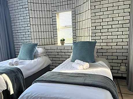Located just 328 feet above rocky beach , Blue Whale Resort offers self-catering chalets with panoramic views of the Indian Ocean. Guests can enjoy the hiking trails and fishing on the beach. The chalets all come with a covered terrace and an open-plan kitchen, dining and lounge area. The kitchen is equipped with an oven, stove, refrigerator, microwave and kettle. Towels and linen are provided. Conference facilities are also available on site. Blue Whale Resort is located just 6.2 mi from the George city center and 7.5 mi from Victoria Bay. George Airport is 8.1 mi away, and the Garden Route Botanical Gardens are 9.3 mi from the chalets. You will have to drive a gravel road of about 3.5kms to reach the resort.