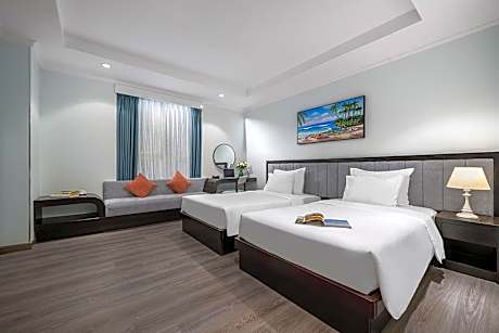 BlueSun Danang Beach Hotel offers top-notch services and amenities, ensuring guests experience utmost comfort.Maintain seamless communication using the complimentary Wi-Fi at hotel. Effortlessly arrange transportation to and from the airport using the hotel's airport transfer services. Discovering Da Nang becomes even more accessible through the taxi, car hire and shuttle amenities provided at the hotel.For visitors traveling by automobile, complimentary parking is available.During your stay at this fantastic hotel, the attentive front desk personnel can provide you with a range of amenities such as concierge service, express check-in or check-out, luggage storage and safety deposit boxes. In search of city's top entertainment, seek assistance at the hotel's ticket service and tours for reservations.At the hotel, utilize the on-site dry cleaning service and laundry service to maintain your beloved travel attire fresh, allowing you to bring fewer clothes.Craving relaxation? Make the most of your stay at the BlueSun Danang Beach Hotel with convenient amenities like room service and daily housekeeping at your disposal. Kindly note that smoking is prohibited in the hotel to ensure fresher air for all visitors. For visitors wishing to smoke, designated smoking zones can be found.At BlueSun Danang Beach Hotel, every guestroom is provided with convenient amenities and fittings to ensure a comfortable stay. Enhance your experience at hotel with the knowledge that certain rooms are equipped with linen service, blackout curtains and air conditioning for your convenience.At BlueSun Danang Beach Hotel, each visit offers an array of intriguing room configurations, featuring accommodations with separate living room and balcony or terrace, ensuring a distinct experience every time.Certain rooms boast in-room amusement features such as television, in-room video streaming and cable TV, offering guests an enjoyable stay. In select rooms within the hotel, a refrigerator, bottled water, instant coffee, instant tea and mini bar is available to cater to your requirements when desired.In the hotel, certain guest bathrooms come equipped with essential bathroom amenities, such as a hair dryer, toiletries and bathrobes, ensuring a comfortable stay for guests. Begin your day with a scrumptious on-site breakfast available each morning at BlueSun Danang Beach Hotel.Begin your day feeling refreshed and invigorated as you enjoy a delightful cup of quality coffee available at the cafe situated within the hotel. At the hotel, an assortment of easily accessible and delicious meal choices are available to satisfy your appetite whenever it strikes.Enjoy an entertaining evening with your fellow travelers at the hotel's bar. BlueSun Danang Beach Hotel provides a superb assortment of leisure amenities for guests to enjoy. During your stay, don't forget to allocate some moments to experience the readily available shoreline.Conclude your holiday perfectly with a visit to massage and spa on your final days. Be sure to drop by the pool at hotel at least once during your stay. At BlueSun Danang Beach Hotel, utmost care is taken to ensure guests' comfort. Relish your preferred beverage in your swimwear by the hotel's poolside bar.Discover the fitness amenities at hotel to maintain your health and strength during your getaway.
