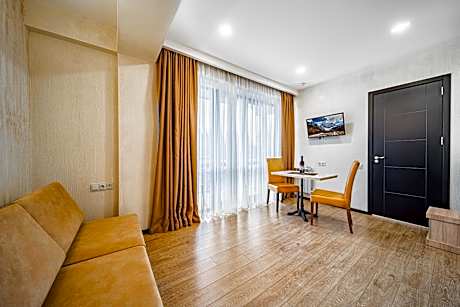 Located in Bakuriani, BM Plaza offers free WiFi. Among the various facilities are ski-to-door access and a ski pass sales point. Guests can sample European and Local dishes at the in-house restaurant. The rooms at the hotel are equipped with a seating area, a flat-screen TV with cable channels and a private bathroom with free toiletries and a bath. All guest rooms will provide guests with a fridge. A continental breakfast is available daily at the property. BM Plaza offers a terrace. Ski equipment hire, bike hire and car hire are available at this 4-star hotel and the area is popular for skiing. Around-the-clock guidance is available at the reception, where staff speak English, Georgian and Russian. Bakuriani is 3.7 mi from the accommodations.