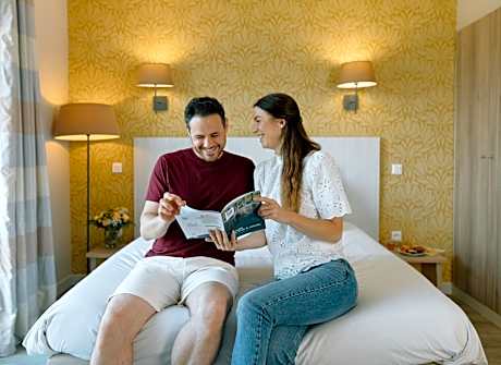 Set on a 25-hectare park, Résidence b'o cottage - b'o resort thermal & spa is a 10-minute walk from the center of Bagnoles de l’Orne. It offers free Wi-Fi access . Apartments and studios are suitable for guests with reduced mobility, Satellite TV is provided, and they also have a bathroom with a walk-in shower. A buffet breakfast can be enjoyed every morning at Résidence b'o cottage - b'o resort thermal & spa. Each accommodations type includes a kitchenette with kitchenware, a microwave and a fridge. A restaurant serving French cuisine can be found on site. B'o spa Thermal is located at 300 mètres from the Résidence, Treat yourself to a relaxation formula hydrotherapy treatments or body treatments with access to the thermal water pool and walking hall, vaporarium, sauna, relaxation room and herbal tea room. (extra charge). Mont Saint Michel and the Landing Beaches are both 1-hour 30 minutes drive away and free private parking is available on site. Direct and free access to the aquatic play areas for adults and children at the Residence (pools).